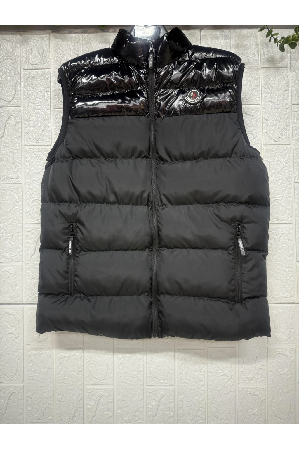 Balıkçı Yaka Fermuarlı Şişme Desen ve Üstü Deri Kolsuz Cepli Yelek