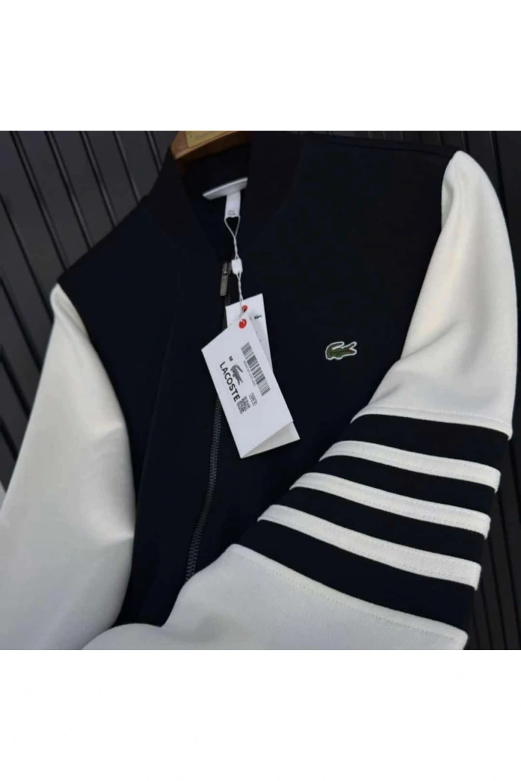 Fermuarlı Kolları Çizgili Gömlek Yaka Sweat