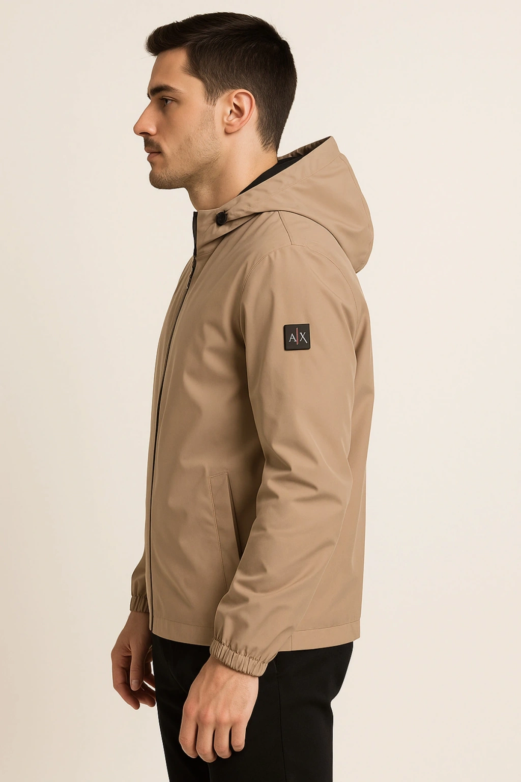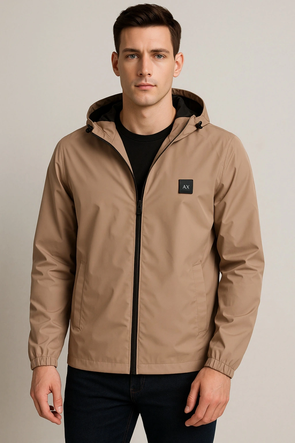Kapüşonlu Fermuarlı Bej Renk Yağmurluk
