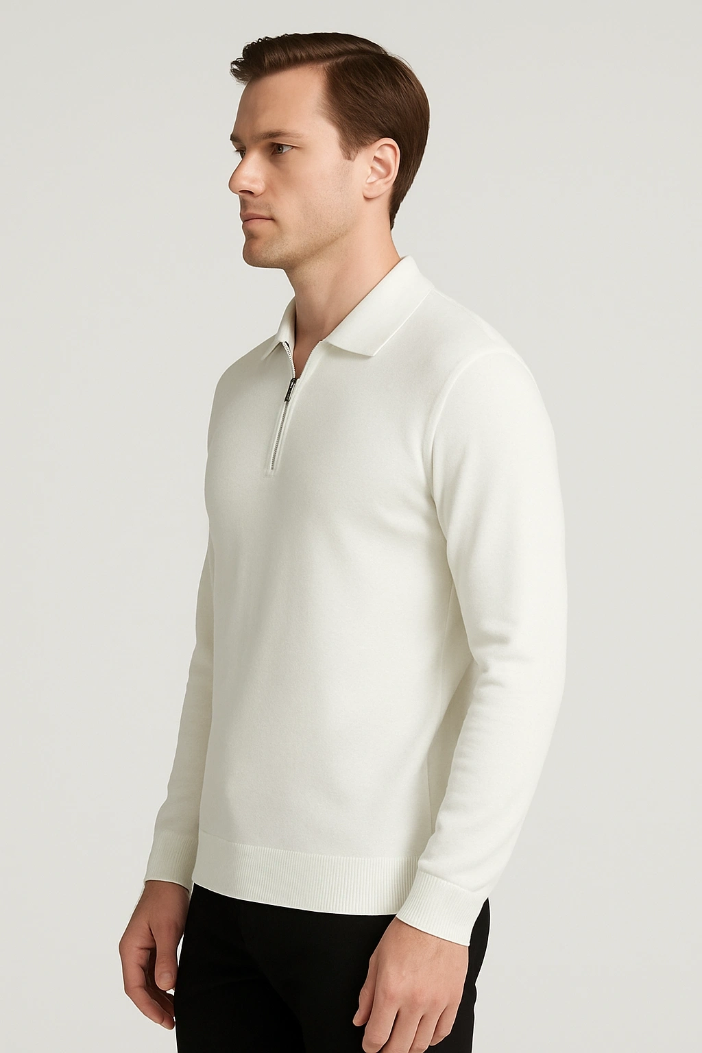 Merserize Kumaş Gömlek Yakalı Fermuarlı Tişört