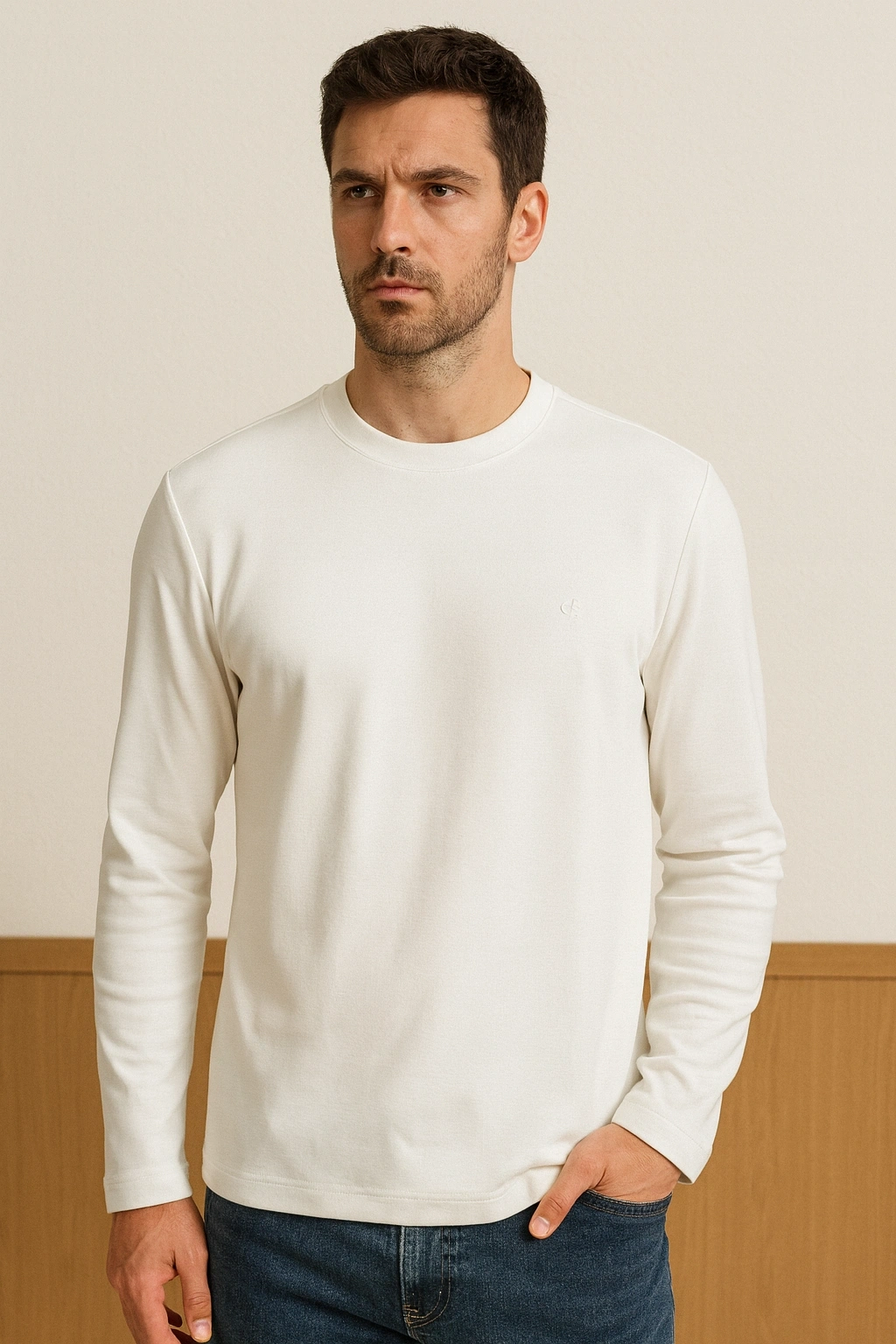 Bisiklet Yaka İki İplik Sade TShirt